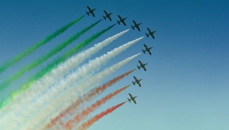 In der Via Gatteri, lebte uns gegenüber ein seltsames Paar. Vater und Tochter. Der Vater arbeitete nicht mehr oder hatte nie gearbeitet, mit Sicherheit aber viel getrunken. Die Frau hätte auch seine Enkelin sein können. Loredana schien ein wenig geistig beeinträchtigt. Sie hatte Schwierigkeiten bei der Artikulation. Wenn man ihr bisweilen eine kleine Aufmerksamkeit zusteckte, packte sie blitzschnell zu, riss einem die Blumen oder die Schokolade förmlich aus der Hand. Manchmal hatte ich den Eindruck, in der Vater-Tochter-Beziehung liefe etwas mehr. Vom Tennisplatz kommend trafen wir vor dem Haus auf Vater Cecchietto. Wir erzählten ihm von den Flugzeugen über dem Tennisplatz, die später auf unserem Heimweg ein zweites Mal über uns hinweggebraust waren. Er wunderte sich, dass wir nicht wussten, dass das die berühmten Frecce waren. Die Frecce Tricolori! Von so etwas hatte ich noch nie gehört. Ma si, le frecce tricolori, die berühmte Kunstflugstaffel der Aeronautica Militare. Er zeichnete mit den Armen wilde Figuren in die Luft. Rivolto ist berühmt für die Frecce. Hier sind sie stationiert auf dem nahen Militärflugplatz. Sie trainieren ihre kunstvollen Flugfiguren in der ganzen Gegend.