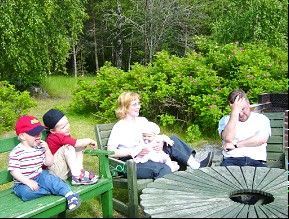 Kirsi studiert Forstwirtschaft in Kuopio und Juoensu. Das ist schon ziemlich nördlich. Noch nördlicher hinauf entführt sie die Liebe. Dass sie sich bei uns in Hohenthurn verlobt hat, beschert mir ein auch nach vielen Jahren nicht nachlassen wollendes Verantwortungsgefühl. Ihr Verlobter heißt Vesa, ist ein kleiner, stämmiger Naturbursche aus Kuosku, das ist eine winzige Ansiedlung in Lappland. Der nächste größere Ort, Savukoski hat auch nur tausend Einwohner. Der Polarkreis liegt etwa 120 Kilometer südlicher. Murmansk ist um vieles näher als Helsinki. Vesas Familie trägt den Namen Kuosku, identisch mit dem Wohnort. Die Eltern sind Rentierzüchter. Kirsi hat Vesa auf der Uni kennen gelernt. Weil auf den naturnahen Sektoren und überhaupt im Norden Jobs das Hauptproblem fürs Überleben sind, müssen die beiden ihren Jobs förmlich nachziehen und somit Übersiedlungen in dichter Folge in Kauf nehmen. Eine kurze Weile führen Jobs Vesa und Kirsi auch in den Süden nach Ylämaa und Nauvo, aber da gefällt es dem Naturburschen aus dem Norden weniger. Die Winter sind viel zu warm! Aber auch Kirsi fühlt sich wohler in den einsamen Weiten der Wälder und verlorenen Seen. Zwischen den Umzügen von und nach Kittilä, Kuusamo, Taivalkoski, Savukoski, und so weiter und so fort, kommen Eetu, Jussa und Lotta zur Welt. Noch sind die Kinder klein und bereit, mit den Eltern auf Reisen zu gehen und wir sind gespannt, ob es Travis, der alte Camper auch einmal nach Hohenthurn schafft. Aber die Tage sind gezählt, bis die drei Wilden selbständig auf Entdeckungsreisen gehen. Wenn sie dann nach Kärnten kommen wollen, wird uns das freuen. Aber werden sie nicht vielleicht lieber nach Kasachstan oder Malaysia oder zu den Aborigines reisen als zu der alten Tante mit dem komischen Onkel in Österreich?