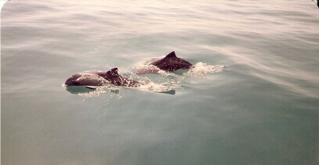 Es ist kühler geworden. Der Himmel milchig blau. Man verträgt lange Hose und Pulli. Hinunter zur Walvisbaai. Gleich danach reichen die Dünen bis an den Ozean. Der ist heute ruhig. Die Wellen sind nicht höher als einen Meter. Übermütig wie die Hunde tollen wir durch den Sand. Die dreißig Meter hinauf auf den Kamm der Düne, wieder hinunter zum Ufer, durch den Sand pflügend, stolpernd, rollend. Confucius say, water or sand, wave is wave. Am Strand das Aas einer Pelzrobbe.