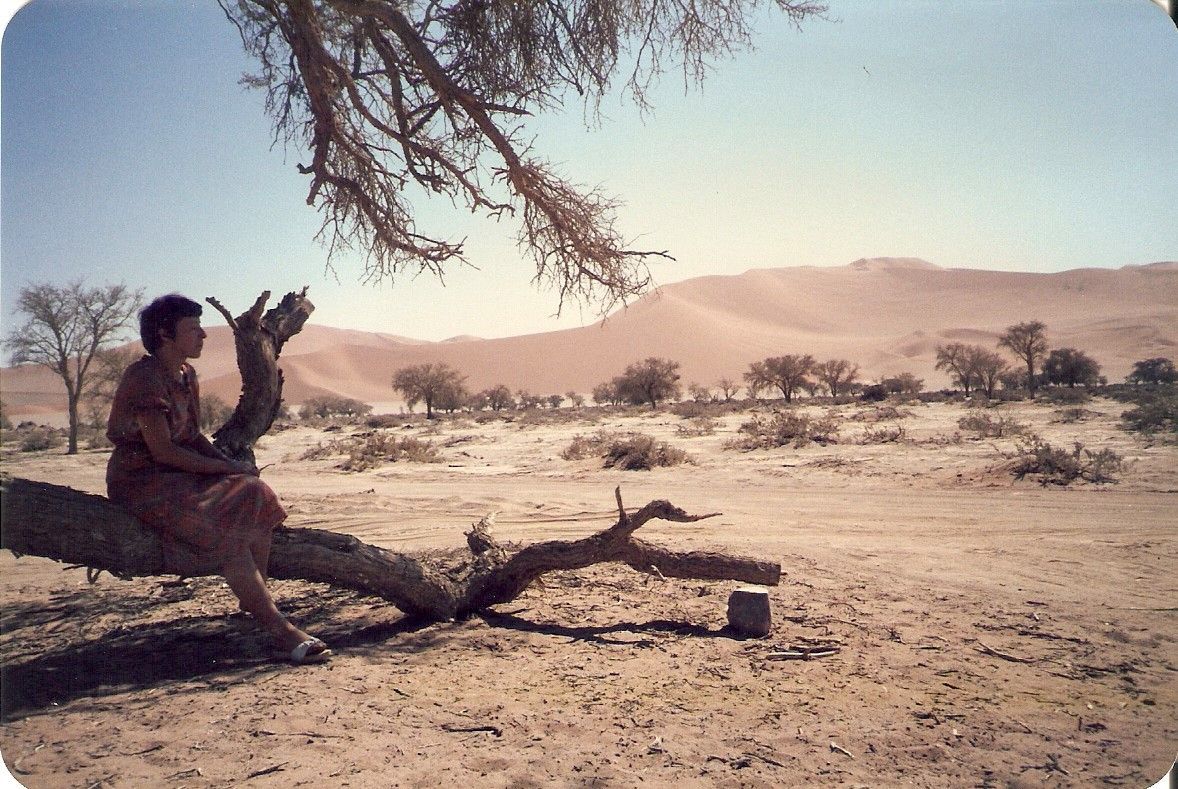Brigitte, die ältere von Heinz‘ Schwestern, großgewachsen, vielleicht um besser mit den langen Hälsen ihrer Lauten und Theorben zurechtzukommen, sehr kultiviert, ist Konzertvirtuosin mit solchen Instrumenten und Gitarre. Sie hat 1963 im Konzerthaus in Wien debütiert und ist seither als Solistin und in Ensembles wie auch als Begleiterin in der ganzen Welt unterwegs. Für sie ist diese Kontinentalreise eine von vielen, für Annamaria und mich hingegen die erste (und einzige). Ich erinnere mich an eines der frühen Konzerte mit Brigitte im Brahms-Saal. Heinz hatte mir die Karte für einen ganz hervorragenden Platz in der ersten Reihe geschenkt. Das hätte ihre Karriere fast zum raschen vorzeitigen Ende gebracht. Ich war natürlich ganz im Bann der schönen Barockmusik und der schönen Künstlerin, die Heinz‘ Schwester war. Später erzählte mir Brigitte, ich habe sie die ganze Zeit derart angestarrt, dass sie fast aus dem Konzept gekommen wäre. Diese Brigitte sitzt jetzt in dem BMW dort vorne, um mit uns durch Namibia zu reisen.