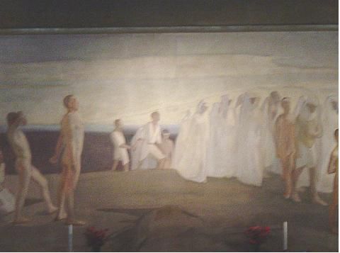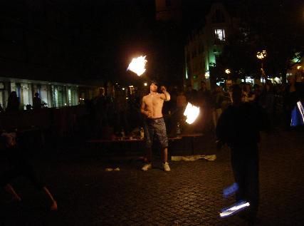 Kurz danach besuchen wir das Innere der Kathedrale. Dort ist eine beeindruckende Fotoausstellung zu sehen, über die Geschwister Scholl (‘Weiße Rose’) einerseits und die Zerstörungen im Weltkrieg sowie den Wiederaufbau andererseits. Die Vernichtung traf Dresden Mitte Februar 1945, also in meinen ersten Kindheitstagen. Die Bombardements waren so heftig, dass ein Feuersturm entstand, der alles vernichtete, was in seinem Weg stand, einer nuklearen Katastrophe nicht unähnlich. Sechzig Jahre nach diesem sinnlosen Niederbrennen stehen von vielen Gebäuden zwar wieder die Mauern, ihre Seelen aber sind unwiederbringlich verloren.