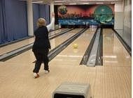 Dafür, dass ich seither mein ganzes Leben nicht mehr gebowlt habe, geht es noch ganz gut. Leider finde ich keine Kugel mit für mich idealem Eingriff. Nach zwei Stunden lassen alle schon Ermüdungsmerkmale erkennen. Die Kugeln landen schon mehr senkrecht als vorwärts auf dem Parkett und Soile gelingt sogar ein Rückzieher. Die schweren Kugeln haben schon begonnen, ihr Handgelenk anzugreifen und manchen ihrer Fingernägel hat sie in den Löchern gelassen.