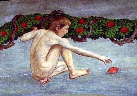 Wir stehen vor dem "schwarzen Auge", einem der abgelegensten Orte der mittelalterlichen Welt, weit abseits jedes Weges, versteckt in dem unermesslichen Walde, wo Clarissa und Johanna Schutz vor den Schweden gefunden in dem vom Vater erbauten Holzhause am jenseitigen Ufer, ganz und gar unzugänglich, es sei denn über das Wasser selbst, darüber der Blockenstein, von wo aus die Schwestern ihr Fernrohr gegen Osten richten, ihr Vaterhaus zu erspähen, die Burg Wittinghausen, die gute Kunde, da sie es unversehrt erkennen, vom Wohlergehen des Vaters und des Bruders, wo auf der Waldwiese Clarissens und des schönen Schwedenkönigs Jugendliebe in reifen, reinen und unauflöslichen Bund verklärt, die verheerende Ahnung, als die Linsen Wittinghausen als rauchende Ruine melden. Durch diese Begebenheit hat der stille Ort unschuldig seine Unschuld verloren, indem das Ungeheuer Krieg eben dort in den liebenden Herzen der Menschen wüten konnte, wo er nimmermehr es hätte dürfen.