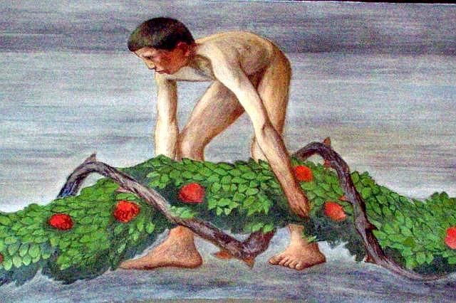 Jetzt geht's an die Äpfel. Was in Reichweite ist, wird leicht abgenommen. Für die oberen Ränge steige ich auf eine alte Leiter und werfe die gepflückten Früchte Soile zu. Einem der Bäume ist unter der Last der Stamm gebrochen. Ich muss den halben Baum wegsägen. Am Ende stehen fünf große Körbe Äpfel neben den Zwetschken in der goldenen Herbstsonne.
