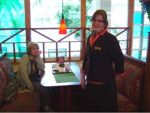 Abendessen. So bleibt uns nicht mehr viel Zeit, um das reichhaltige Buffet in Ruhe auszukosten. Da es bald geschlossen wird, holen wir uns alle möglichen Gänge auf einmal und sind zur Verzweiflung des Personals noch lange nach Sperrstunde an unseren Tellern tätig.