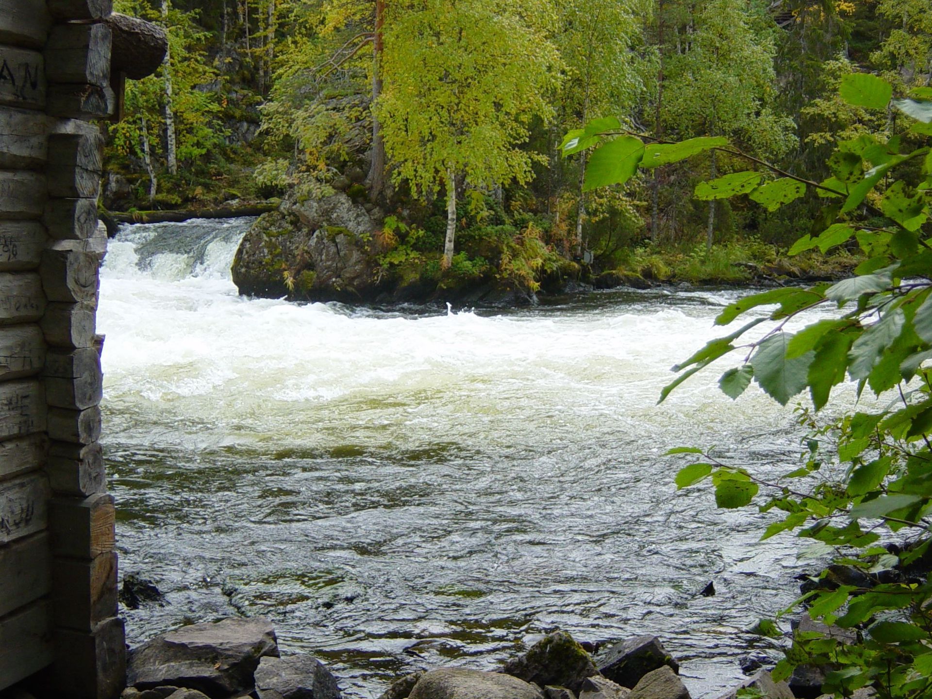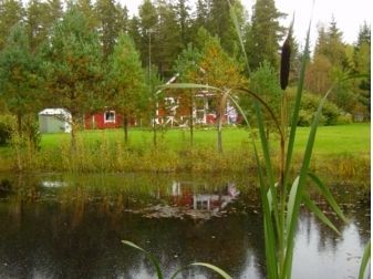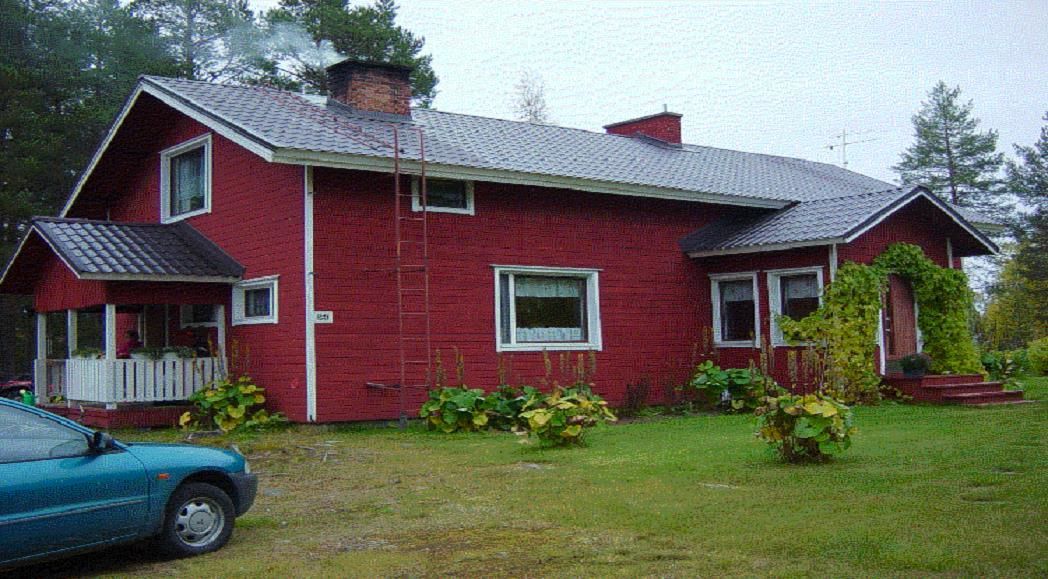 Wir fahren nach Mynämäki, von da Richtung Vehmaa. Nach kurzer Strecke führt ein Sträßchen in die Gegend hinein, wird bald zur Schotterpiste, die sich zwischen Hügeln, keiner mehr als zwanzig Meter hoch, dahin windet. Nach wenigen Kilometern endet der Weg an weißen Torflügeln, die offenstehen. Gleich dahinter ein skandinavischrotes Häuschen, vor dem wir anhalten. Sannas Auto steht schon da. Wir sind hier richtig. Das ist Sannas und Outis neue Traumheimat, Sanna hat sie Mökkerö genannt. Unser Wagen steht an der Rückseite des Häuschens, die dem Fahrweg zugewandt ist. Vor der Hütte breitet sich ein weiter Park aus. Jawohl, ein Naturpark, anders kann man
