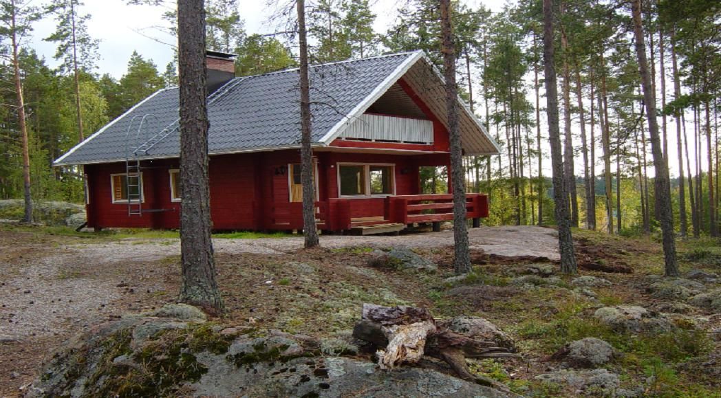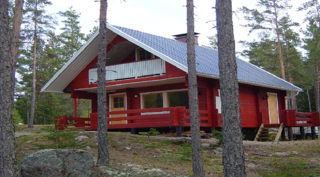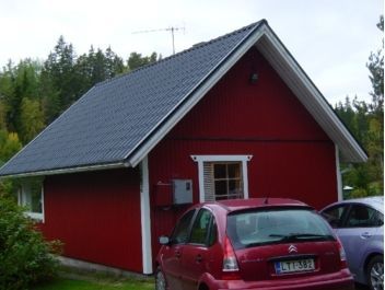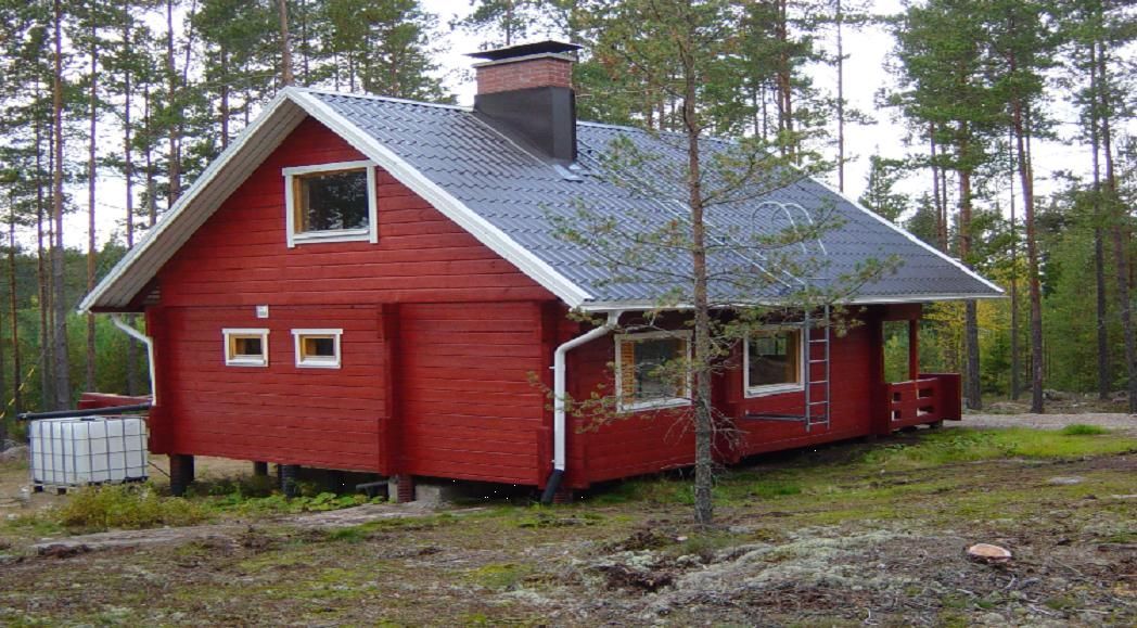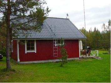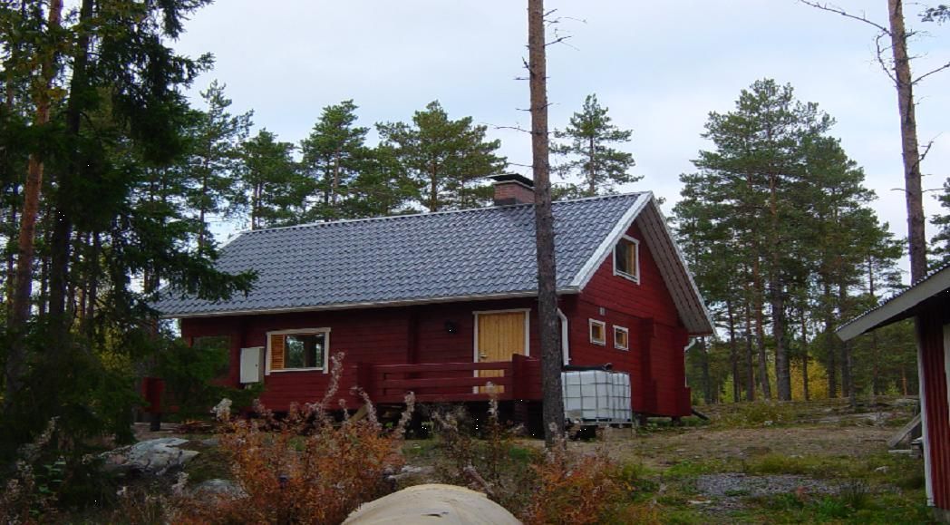 Danach haben wir bei Nousiainen ein Mökki zu besichtigen. Outi hatte es einst, noch auf ihrer eigenen Suche, gesehen, aber nicht in Betracht gezogen. Nousiainen ist benachbart mit Mynämäki und Vehmaa. Unbegleitet finden wir die Hütte mitten im Wald, etliche Kilometer, auch auf Schotterstraße, von Nousiainen entfernt. Vorteil: Der Wald- und Felsboden erfordert keinerlei besondere Pflege. Es ist ein relativ neues Holzhäuschen in Skandinavischrot. Durch die Fenster erkennen wir Veranda, Küche, Wohnraum, Dachraum zum Schlafen; also Mökkerö ähnlich. Es steht auf Stelzen auf dem Felsengrund. Abseits ein kleiner Schuppen als Abstellraum und ein noch unfertiges Klo. Wir finden eine Leiter und blicken durch ein Fenster in die Sauna. Weiter den sanften Hang hinauf, aber nicht in direktem Sichtkontakt, steht ein größeres Haus, dazwischen ein Teich, der offenbar zu diesem Haus gehört. Auf dem angebotenen Grundstück liegt auf etlichen Haufen übriggebliebenes Baumaterial und Schutt umher, auch ein Erdtank ist dabei. Die Lage ist schön. Stille, Stille und wiederum Stille. aber Soile fehlt das Meer und über die Hütte sind wir uns noch nicht klar.