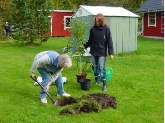 Outi und Soile pflanzen einen Kirschbaum. Ob wir je noch Früchte davon kosten werden können?