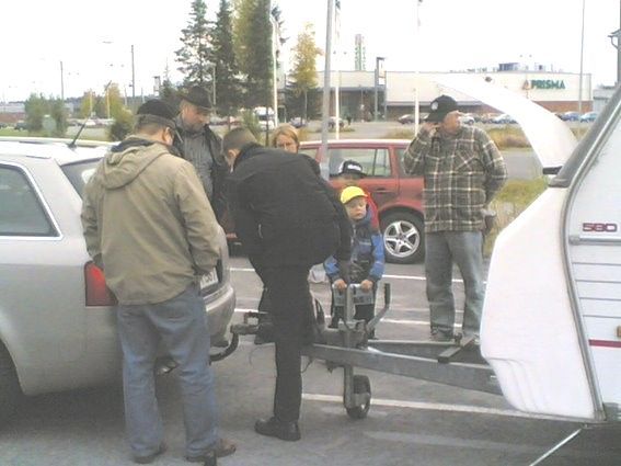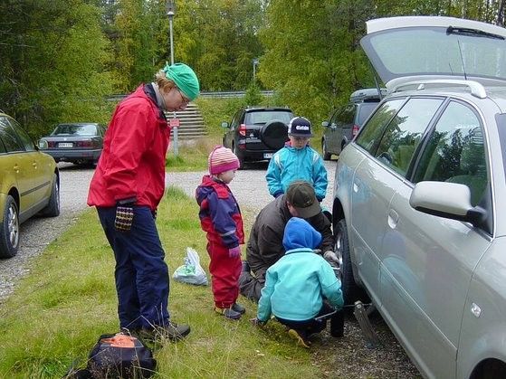 Sanna und Outi sind schon frühzeitig aufgebrochen, um in ihrer neuen Hütte den Fußboden zu streichen. Wir werden mit den Zwillingen später nachfolgen.