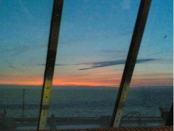 Ruhig vergeht die Zeit, wir beobachten die anderen Schiffe, denen wir begegnen, oder die wir überholen. Vorüber an Bornholm, bald erscheint die schwedische Küste. Es ist jetzt wolkig mit sonnigen Episoden. Ich arbeite am Tagebuch, das ich mir zu Mittag aus dem Auto geholt habe. Damit ich bei der Gelegenheit nicht ein paar fremde Wagen ausraube, werde ich von einem Matrosen begleitet.